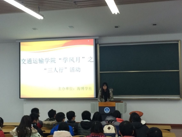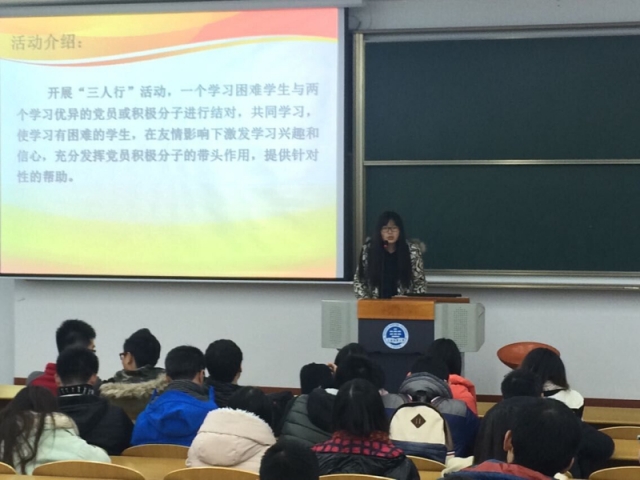 2014年12月28日,交通运输学院海博学社在3D209举行了 “三人行”助学活动的介绍会,与学习困难学生结对的党员和入党积极分子均出席了本会。